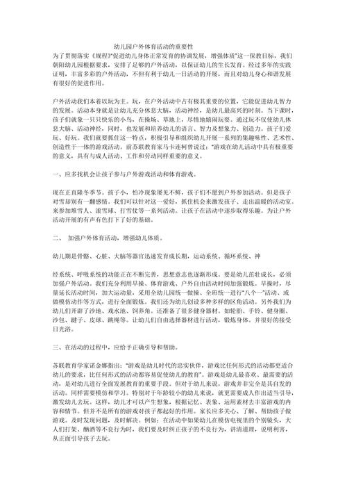 通过以上要求和指导建议,幼儿可以在体育活动中得到全面的发展,提升自身的综合能力,为未来健康成长奠定基础。