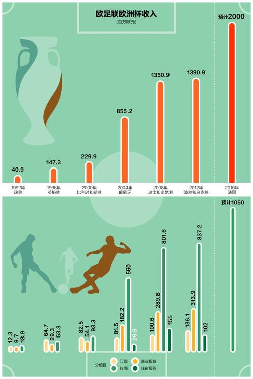 :欧洲杯的门票销售是直接收益的重要组成部分。以2016年法国欧洲杯为例,共售出250万张门票,总收入超过2亿欧元。这些收入直接流入赛事组织者和举办国的经济中。